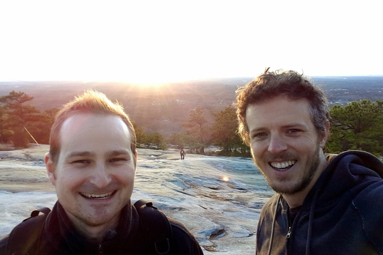 | Clambering up the rock for a view of Atlanta at sunset |